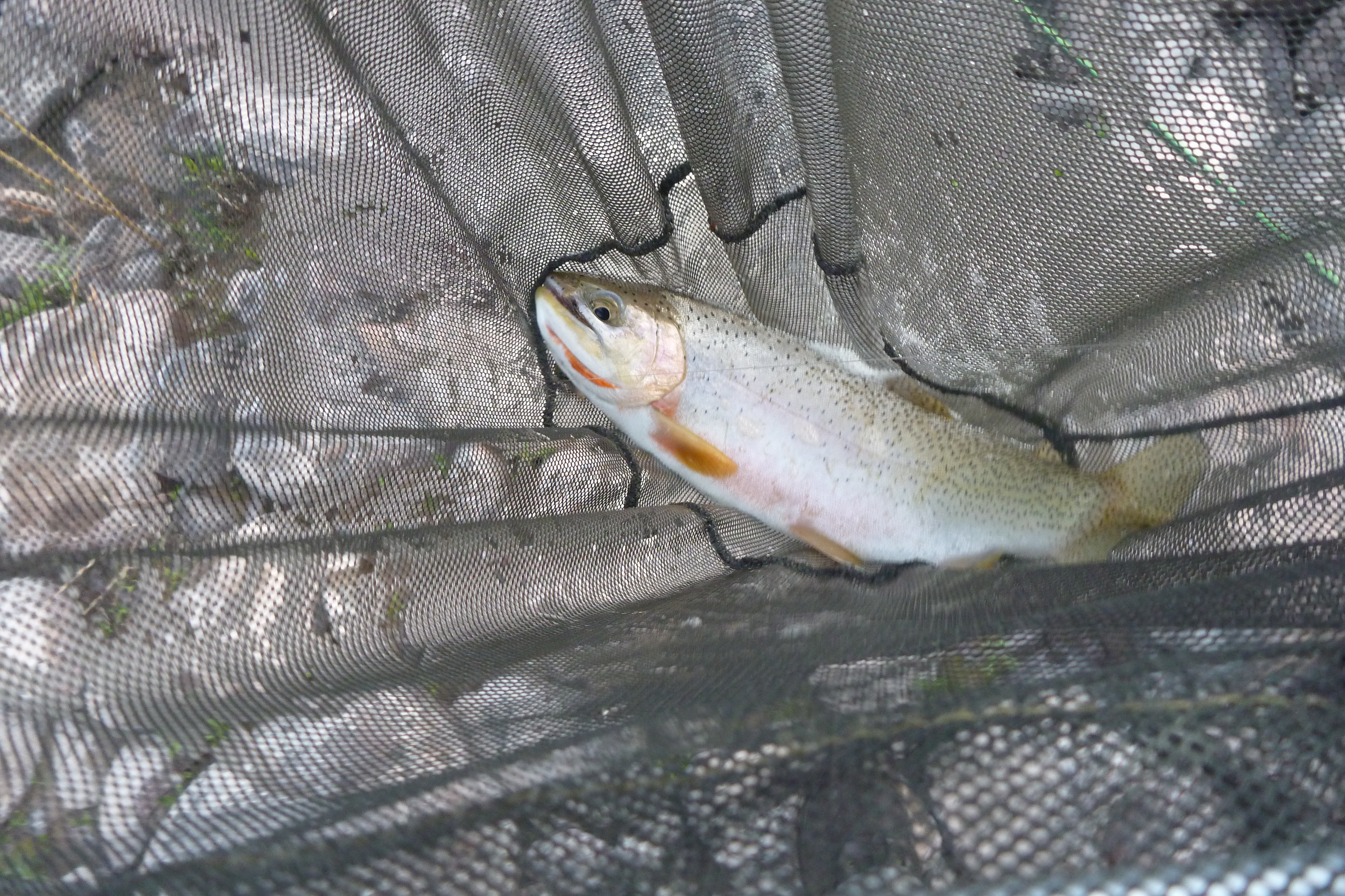 I started walking downstream to the fish while bringing in the line. He was starting to tire and I was closing the gap. Eventually he got close enough to net. Like the others, he wasn’t huge but he put up a good fight.