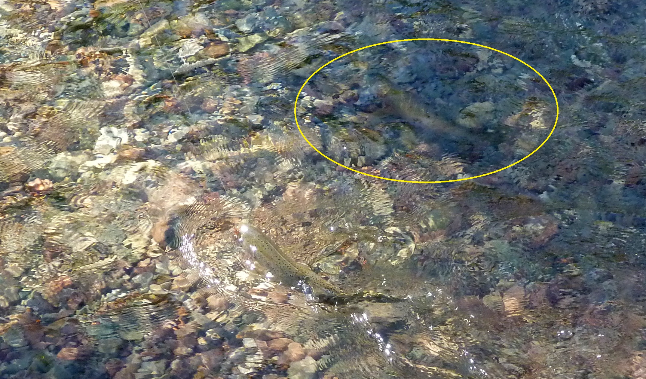 The advantage of the river branching into tributaries is that the volume of water gets distributed, making each ‘mini-river’ a smaller, more fishable stream. The disadvantage is that the streams are wide open with no overhead cover. I saw an Osprey cruising the river looking for fish, so I didn’t expect trout to be near the surface in the middle of the day. But I checked out each of the streams anyway.