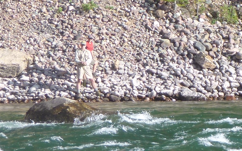 I wanted this day to be low impact so I could be well rested for the hike out tomorrow. There was still a good looking stretch of water on the other side of the bridge that I hadn’t tried yet and it was pretty easy to access. I didn’t get up and around too early (I was getting the hang of this relaxing vacation thing)! I took all my clothes that needed washing down to the river/Laundromat and gave them the treatment. Some of the rivers I’ve been in would make this a revolting prospect, but the water in the Flathead River is cleaner than most laundry rooms ever see. I brought everything back to camp and strung them up on the clothes line so they would dry in the sun. After cleaning up the area a little, I walked over to the bridge to survey the area. About half dozen campers had pulled their rafts in for the night and set up a few tents across the river. Outfitters will take rafters through the Bob for as many days as they book on a guided trip. They can pull out at several places along the river to camp, hike, swim, fish, or do whatever. The outfitters will fix meals for them and do whatever else can make it a good experience. It’s a great way to see the Bob if you can afford it. But they don’t get out of bed for less than a few thousand dollars.