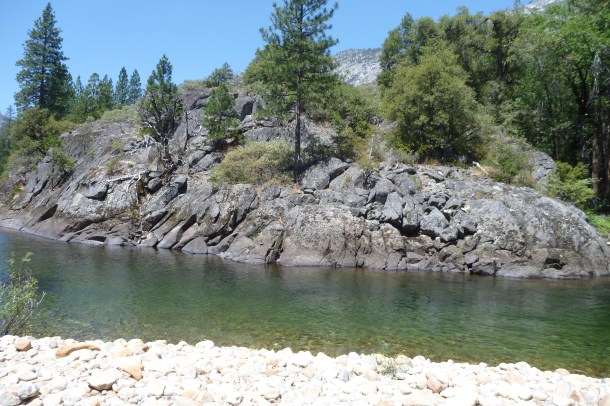 I woke up around 5:30 (dawn), but didn’t get up until about 8:30. I had planned on fishing about 2 miles of the river over the next 3 days, but I wasn’t eager to do a lot of hiking this morning. I did a little housekeeping around camp and dug out my fishing gear. I did some stretching to loosen up my stiff legs and it seemed to help a little, but each step was still painful. The Tuolumne is not dammed in this area, so the flows vary widely throughout the year. This means lots of rocks and wood debris border the river, and you have to be careful to avoid turning an ankle or falling on your face. I didn’t have full confidence in my knee, which meant I needed to be even more cautious when boulder-hopping near the river.